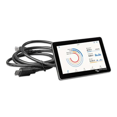 GX Touch 50 y GX Touch 70 son pantallas accesorias para nuestro Cerbo GX. Las pantallas táctiles de cinco y siete pulgadas proporcionan un resumen instantáneo de su sistema y le permiten ajustar la configuración rápidamente. Conectadas simplemente con un cable al Cerbo GX, su diseño súper fino y resistente al agua, con posibilidad de montaje en la parte superior y fácil instalación, proporcionan una gran flexibilidad a la hora de crear un panel de control limpio y claro.