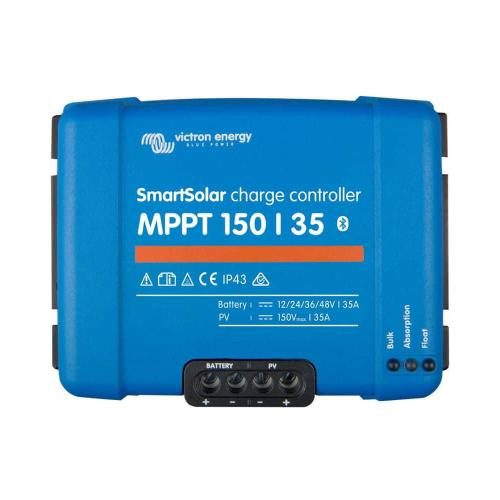 El Controlador SmartSolar MPPT 150V 35A VICTRON ofrece hasta 35A de corriente de carga a baterías pudiendo trabajar hasta con 150V de tensión en paneles. La tecnología Victron ofrece para toda esta gama Smart, conectividad Bluetooth gracias a la cual podremos monitorizar y configurar el controlador de carga desde nuestro celular. El gran rendimiento de los algoritmos de los MPPT de Victron aseguran un rendimiento máximo de nuestra instalación solar. Gracias al seguimiento ultrarrápido del punto de máxima potencia (MPPT) obtendremos muy buena producción fotovoltaica incluso con nubosidad parcial. Compatible con baterías de 12V, 24V y 48V e incorpora una amplia protección electrónica.